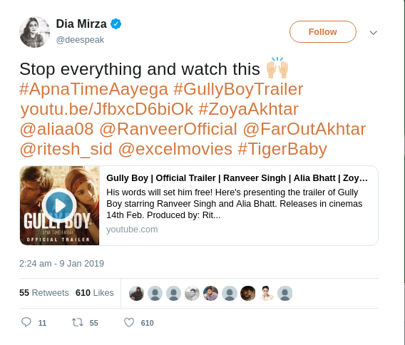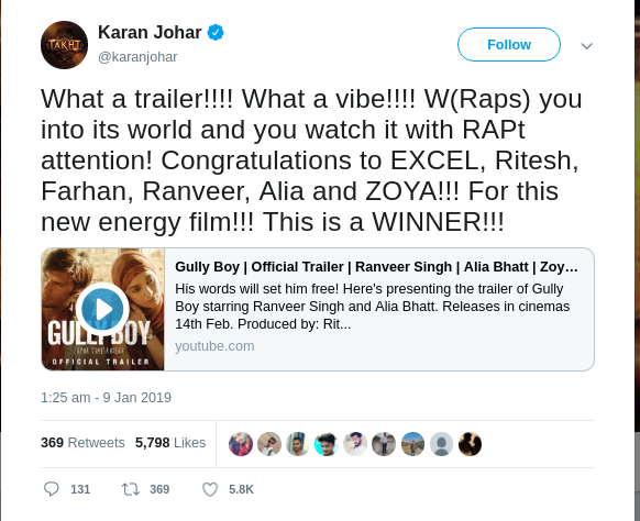 The first official trailer of the film was released on January 9, 2019, which took the entire world by storm. Uncountable fans went on top social networking sites like Twitter, Youtube, Instagram, and Facebook to show their support and excitement for the upcoming film. But it was not only the fans but also many top celebrities who took the Twitter platform to show their support.