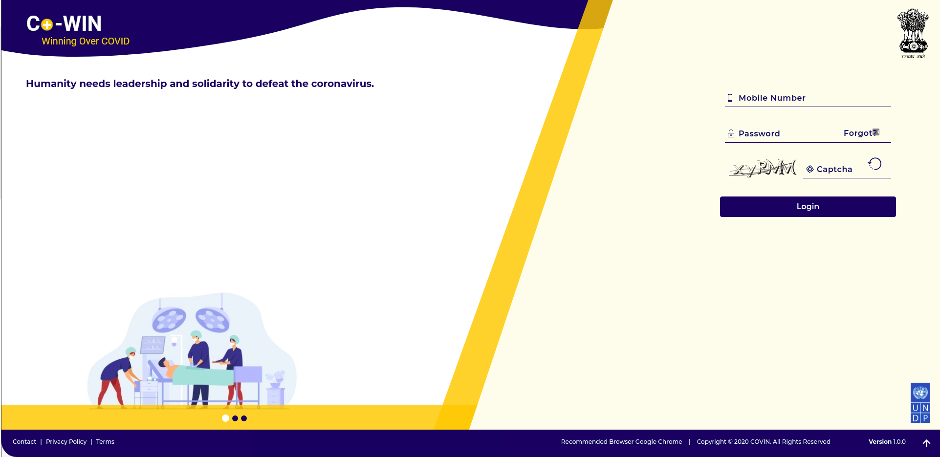 CoWIN (COVID-19 Vaccine Intelligence Network) is a comprehensive cloud-based IT solution for planning, implementing, monitoring and evaluating COVID-19 vaccination in India. From the national to the vaccinator level, the CoWIN platform has utilities for the entire public health system. The end-to-end system allows for the creation of users, registration of beneficiaries followed by planning, scheduling and implementation of the vaccination process.